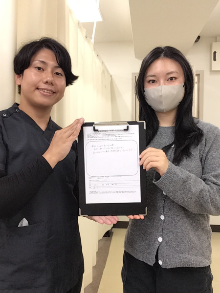 3か月続けると良くなると信じてこちらに通って、1か月で効果が出て『シビレ』の症状がなくなりました。