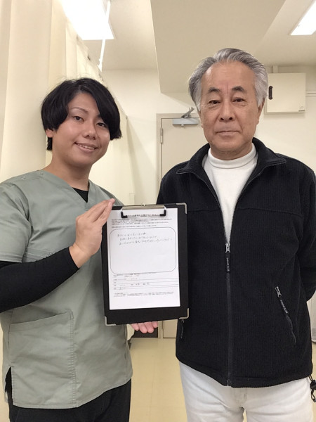 4年程前?朝起きたら立って歩けないほどの足のふとももの付け根からふくらはぎに痛みを感じ、整形外科で検査を受けたところ、首の骨が3ヶ所つぶれている! 医者が言うに加齢からきているとのこと、しばらく痛み止めの薬を飲み続けてはいたが思うように治癒せず、痛みを抑えながらの生活を続けていましたが、 貴院に来て3ヶ月ですが施術をしていただき歩くたびの痛みやつまずきもなくなり、なんら支障なく生活が送れるようになりました。 今後は体調に合った運動をしながら生活をしたいと思っております。 ありがとうございました、感謝!